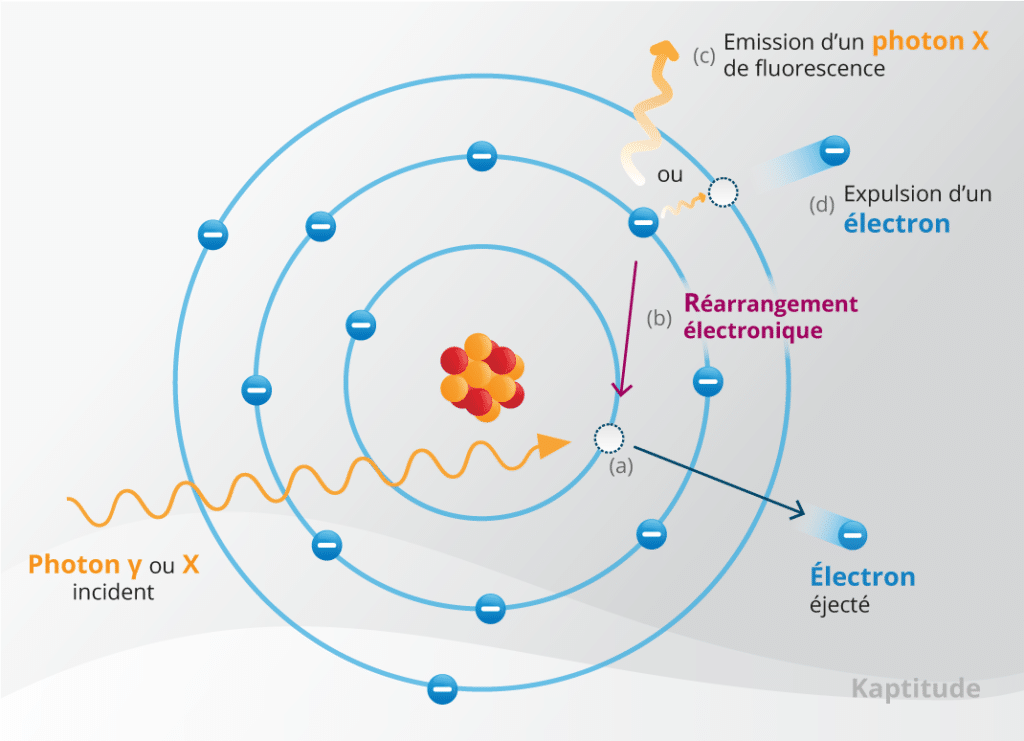 L’effet photoélectrique apparaît quand un rayon γ ou X rencontre un électron proche du noyau.