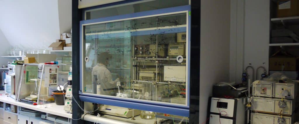 Au laboratoire, l’exposition respiratoire aux poudres et vapeurs de produits chimiques dangereux pour la santé peut être évitée grâce à l'utilisation de hottes aspirantes, appelées sorbonnes.