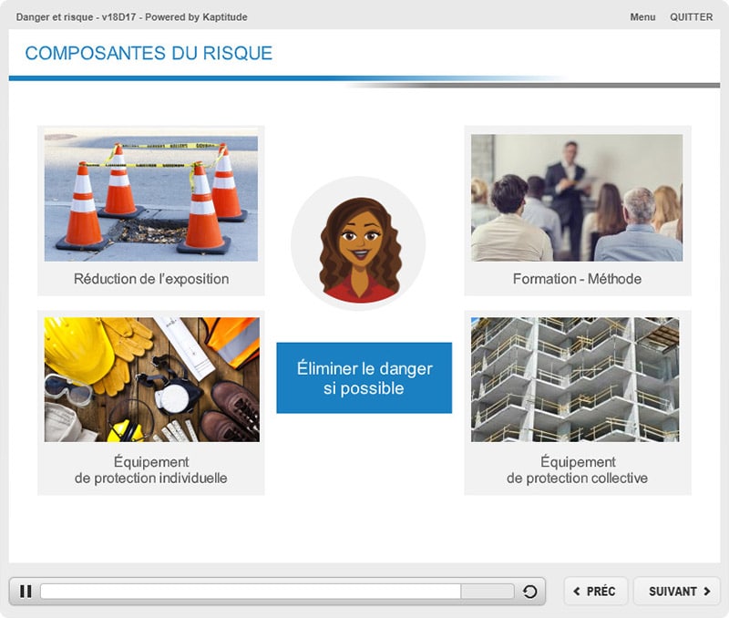 Les notions de « danger » et de « risque » sont intriquées. Comprendre les différentes composantes du risque permet d’agir sur chacune d’elles de manière à éliminer le danger ou réduire l’exposition à ce danger.