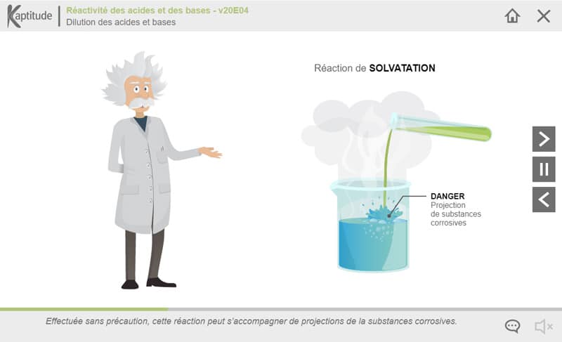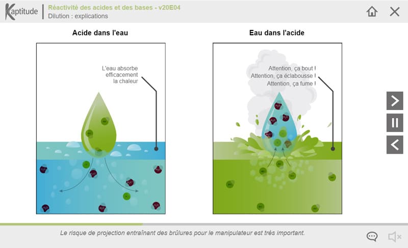 Le pH d’un produit nous permet de le classer parmi les acides ou les bases et d’identifier sa dangerosité potentielle, mais ce n’est pas suffisant. La compréhension des propriétés des acides forts et concentrés et des bases fortes et concentrées va permettre d’aller plus loin dans l’analyse de risque préalable à toute manipulation. Elle est indispensable au choix des équipements de protection adaptés. Enfin, l’identification de possibles réactions exothermiques entre acides et bases, entre différentes familles d’acides et avec l’eau permettra de mettre en place les règles de stockage adaptées à ces produits.
