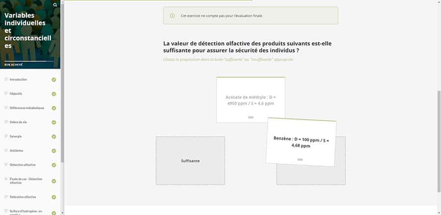 • Découvrir les seuils bas et haut de détection olfactive et repérer les valeurs seuil pour quelques produits dangereux.