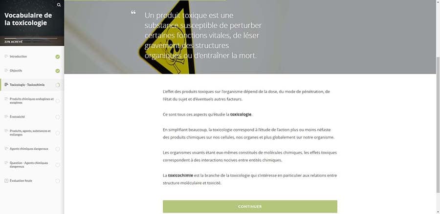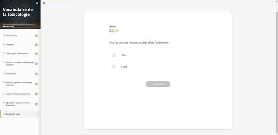 • Modalités d’évaluation : évaluation de l’atteinte des objectifs via un ou plusieurs exercices d’évaluation intégrés au module.