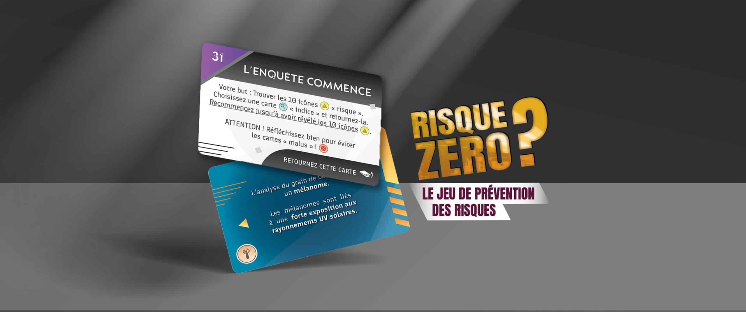 “Risque Zéro ?” est un jeu de cartes personnalisable qui vise à informer et à sensibiliser les employés sur les pratiques de sécurité. En prenant conscience du processus d’analyse des risques et de son utilité dans le contexte professionnel, “Risque Zéro ?” permet de sensibiliser vos collaborateurs à la prévention des risques de façon ludique !